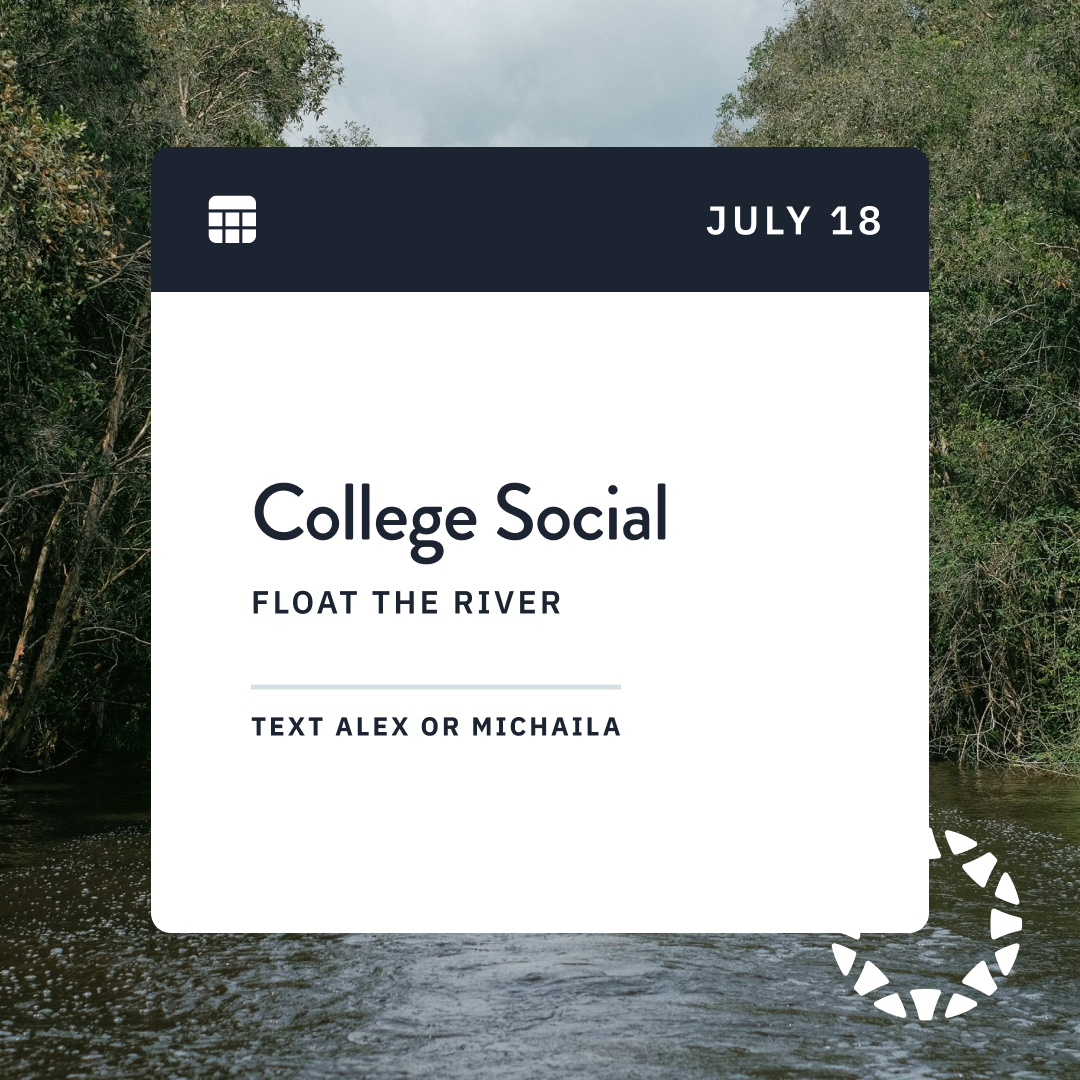 Float the river with us on July 18! Text Alex (214-707-7356) for details.